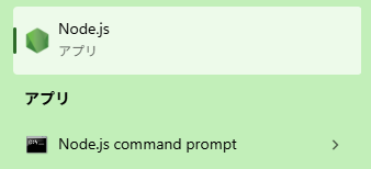インストール完了したら、node.js command promptを起動(黒のアイコンの方)